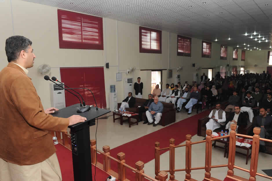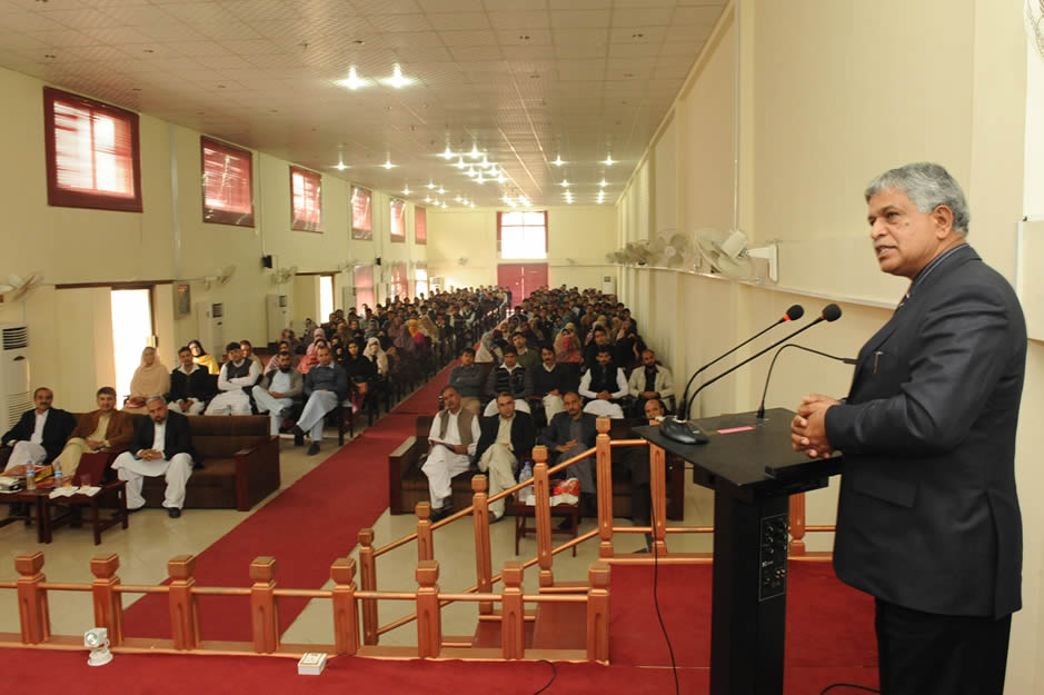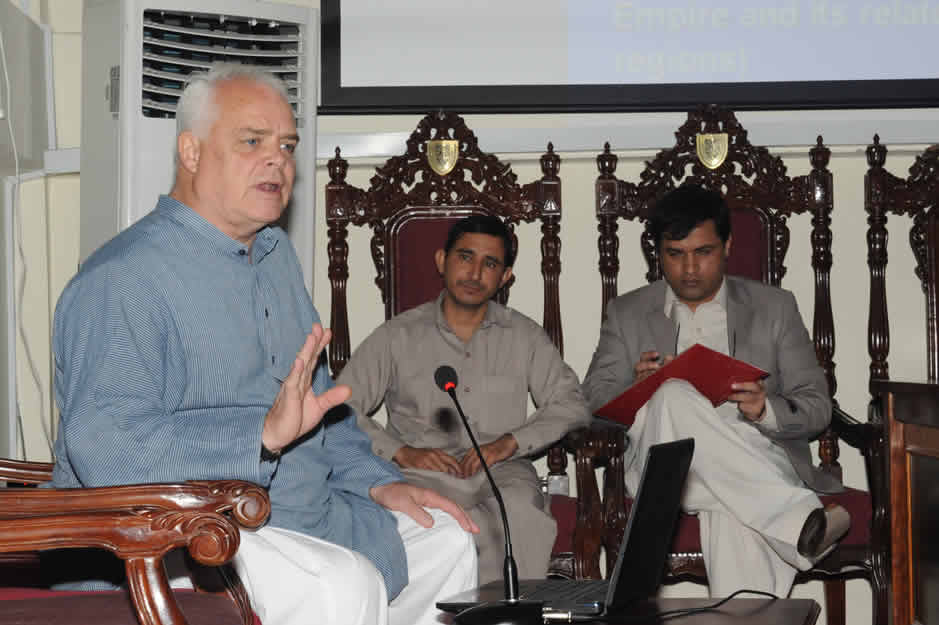 Prof. Dr. Ihsan Ali, Vice Chancellor, AWKUM in collaboration with the staff of the University Museum has arranged a lecture on the archaeological discoveries of Indus Valley Civilization in India and Pakistan at the auditorium of AWKUM, main campus on November 22nd, 2013. Prof. Dr. Jonathan Mark Kenoyer from the University of Wisconsin, Madison, USA in the capacity of chief speaker accompanied by Mr. Nadeem Akbar, Director of American Institute of Pakistan Studies have attended the event. Prof. Dr. Ihsan Ali (Vice Chancellor), Prof. Dr. Zahoor-ul-Haq (Dean faculty of Arts), Dr. Zia Ullah (Chairman, Department of Tourism and Hospitality) Mr. Abid-ur-Rehman (Curator, University Museum), Faculty of Management Sciences, Sociology, Tourism and Hospitality, Education and their students have participated in it. To begin with, Mr. Abid-ur-Rehman (Curator) welcomed all participants followed by a recitation from the Holy Quran. The formal proceeding was started by Prof. Dr. Jonaton Mark Kenoyer with his extensive lecture on the archaeological discoveries of Indus Valley Civilization in India and Pakistan. Prof. Kenoyer shared his past experience in the field of archaeology of Pakistan and highlighted the latest development in Indus Valley Civilization. Prof. Kenoyer further shared his new theories about Indus Valley history, culture, ethnicity and about settlement pattern. Prof. Kenoyer also express his desires to work with staff of University Museum under the supervision of Prof. Ihsan Ali for the development of Pakistan Archaeology. This presentation was followed by a key note from the Vice Chancellor, Prof. Dr. Ihsan Ali. In his remarks, Prof. Ali threw light on the distributions of Indus Valley sites in Pakistan and discussed view, reviews and issues relevant to Indus Valley sites. Moreover Prof. Ali ensured the introduction of Archaeology department in AWKUM. At the end Prof. Ali paid warmest thanks to the guests and participants. After question and answer session, the guests were given a visit to University Museum, where the Curator briefed all guests about museum collection and shared future planning for the development of this Museum followed by a visit to Garden Campus of AWKUM.