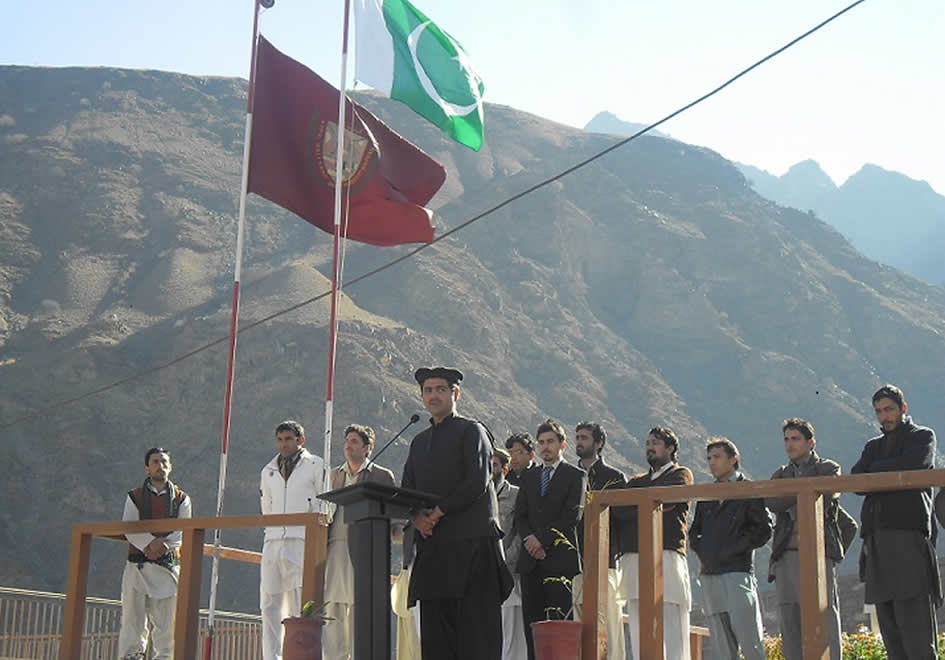 Bacha Khan Campus Chitral, AWKUM, observed its 2nd foundation day on Dec 12, 2013. The ceremony was started with recitation of few verses from the Holy Quran. After which flags were being hoisted with all university staff including students present on the occasion. During the flag hoisting ceremony, Pakistan's national anthem along with AWKUM's anthems was being played.