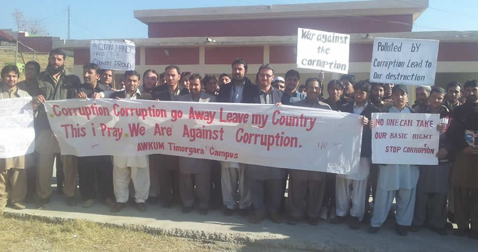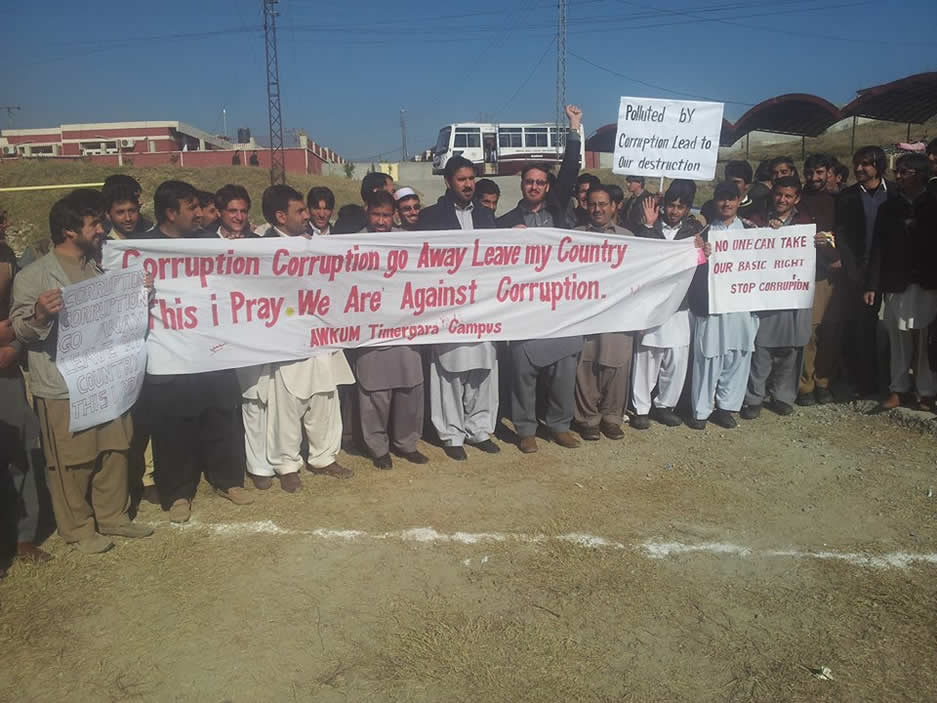 AWKUM Timergara Campus Lower Dir, organized different activities in observance of the Anti-Corruption Week held from 9th to 14th December 2013. Among these activities, a Walk was organized. This walk was held on Thursday Dec 12, 2013, attended by Coordinator AWKUM, Timergara Campus, large number of students and staff members.