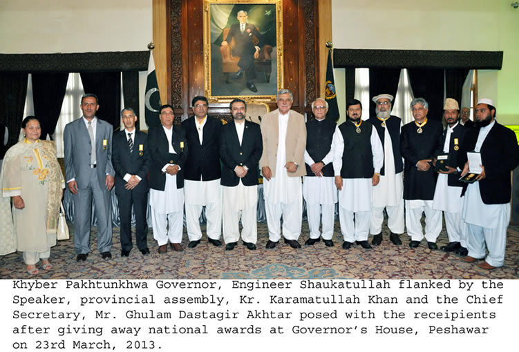 The awards-giving ceremony was held at the Governor’s House. Peshawar.