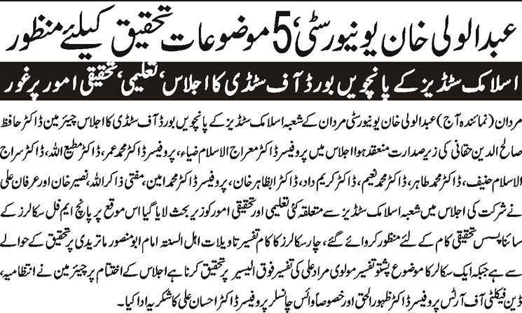 5th Meeting of the Board of Studies in the subject of Islamic Studies was held in the conference room of the University on April 11, 2013. Dr. Hafiz Salihuddin Chairman Department of Islamic Studies chaired the Meeting