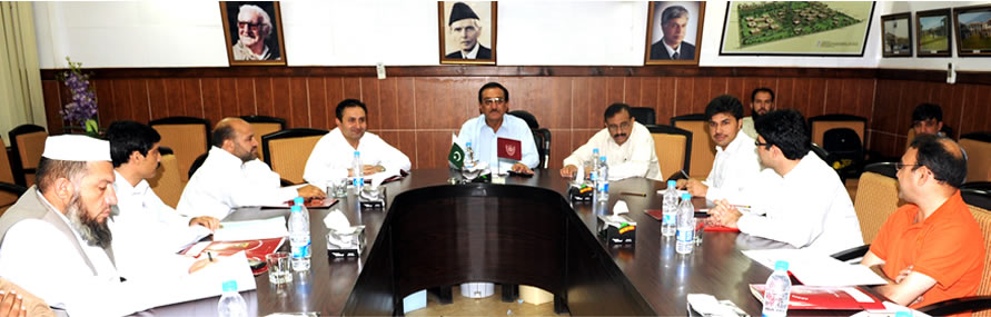 Dr. Saeed-ul-Islam Registrar, Dr. Hafiz Salih-ud-din Chairman Department of Islamic Studies, Mr. Naveed Khattak Chairman Department of English, Mr. Ashraf Ali Chairman Department of Law, Raham Zaid Chairman Department of Sociology and Mr. Hassan Deputy Registrar Academics attended the meeting.