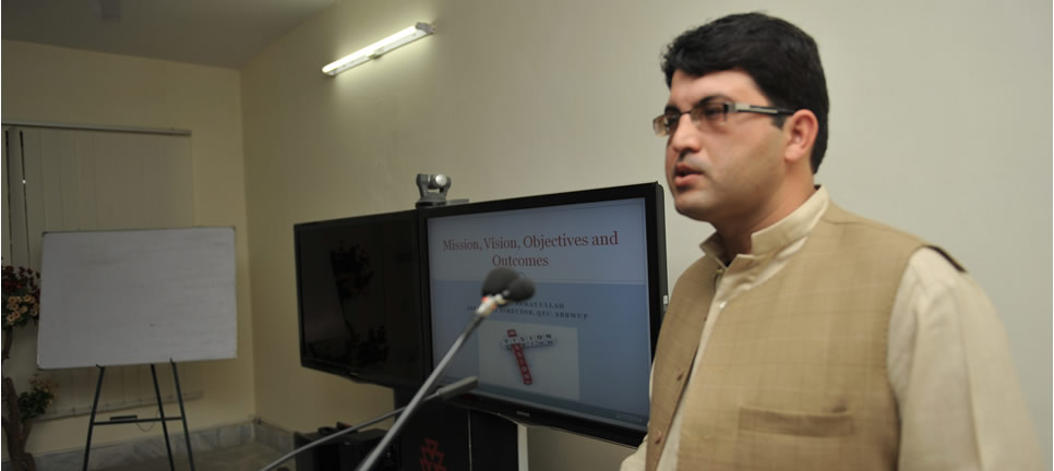Dr. Shahid Jan Kakakhel, Assistant Professor Department of Management Sciences AWKUM, was the Chief Guest on the occasion. He acknowledged the efforts of resource persons and enlightened the attendees with the importance of Self Assessment process at the department level as well as University level. He further said that the PT members should fulfill their duties honestly and he also added that the PT members act like the backbone for QEC in various departments and in time delivery of the Self Assessment Report will stream line the activities of QEC.