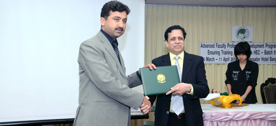 Dr. Momin Khan, Assistant Professor Dept. of Chemistry, UCS Shankar, Abdul Wali Khan University Mardan, KP, has successfully completed a three week Advance Faculty Professional Development Program on “Ensuring Training Effectiveness (Batch 5), conducted at AIT Extension, Asian Institute of Technology Bangkok dated 24th March-11th April 2014.
