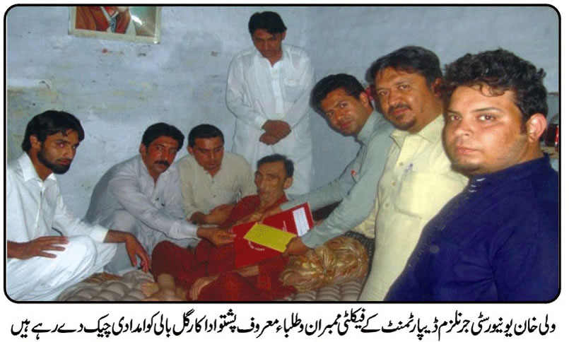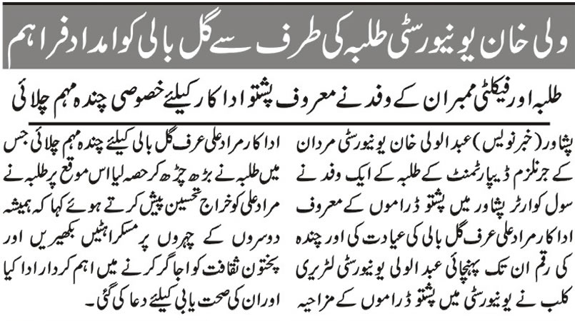 AWKUM Literary Club at Department of Journalism & Mass Communication had launched a three day charity campaign for the veteran Pashto comedian Murad Ali who is seriously ill and had appealed to the civil society for financial help.
