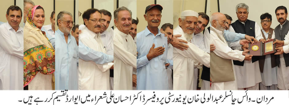 In this regard a special function took place at the Main Campus which had the Vice Chancellor Prof. Dr. Ihsan Ali as the Chief Guest. On this occasion a profound number of students as well as local dignitaries were present which included former Provincial Minister, Abdul Subhan, Prof. Dr. Humayun Huma, Prof. Dr. Mian Unwan-ud-Din, Dean Faculty of Sciences, Prof. Dr. Khanzadi Fatima Khattak, Prof. Dr. Farman-ud-Din Bakhshali, Mr. Farhad Khawar, Musarrat Khan Aasi, Haji Muhammad Shafi, Mr. Riyaz Mayar, Mr. Ashraf Khan, Mr. Yousaf Khan and Mr. Hidayat~ur~Rehman Hoti.