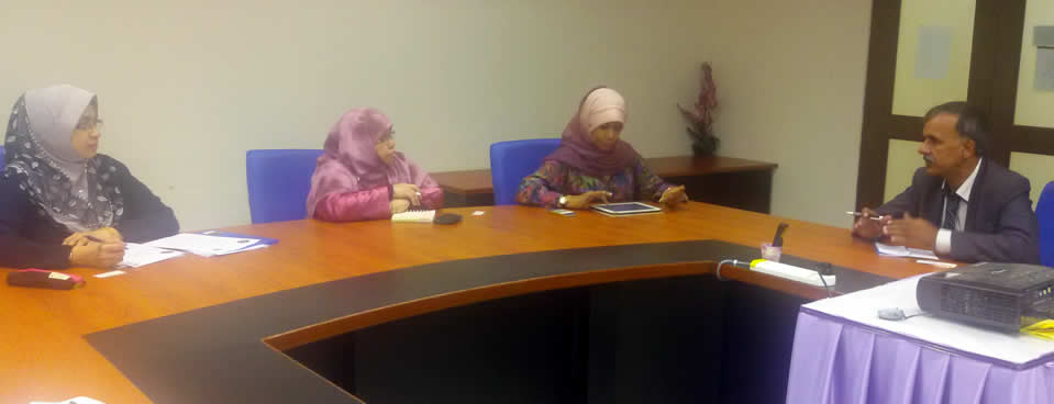 Director, Human Resource Development (HRD), Dr. Amir Zaman met with the Dean Faculty of Management Sciences and other officials of University of Technology on November 25, 2014 at University of Technology, Malaysia.