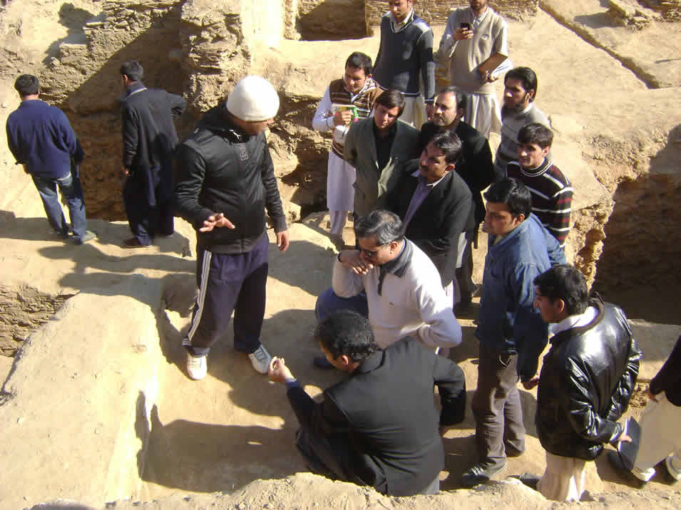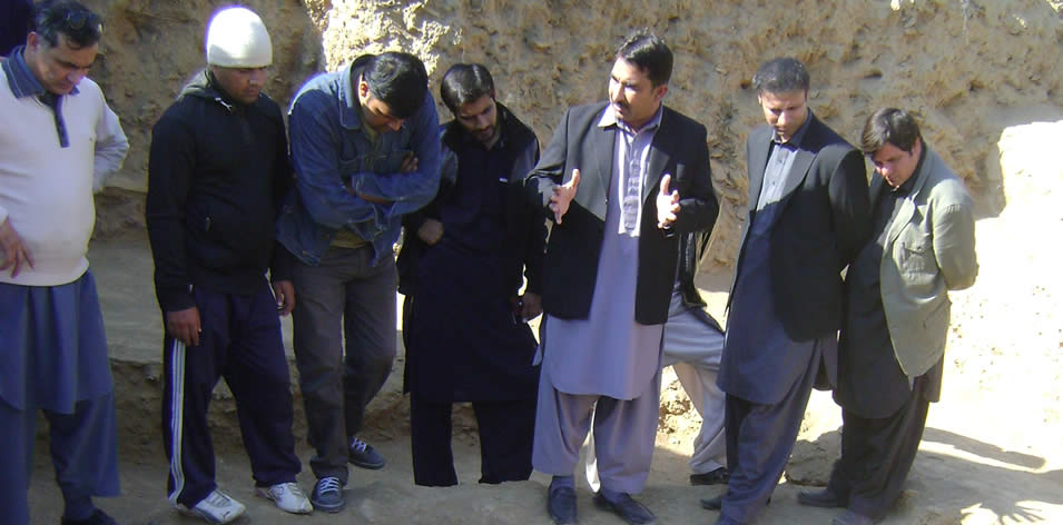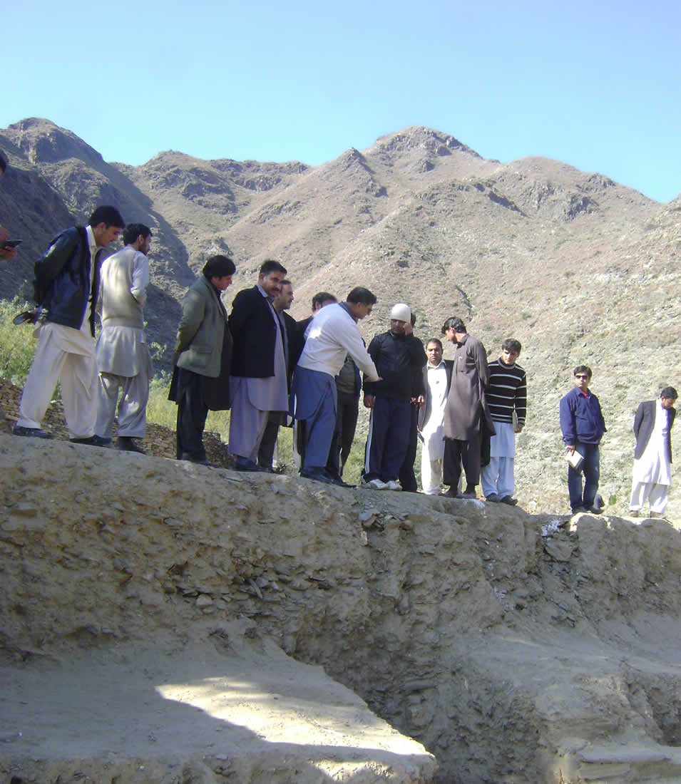 The Project Director Prof. Dr. Ihsan Ali (Archaeologist / Vice Chancellor) in his last visit to the site of Koi Tangay Kandaray on Sunday 23rd November, 2014 directed Mr. Abid-ur-Rehman (Field Director) to communicate with Heads of most of the science departments of Abdul Wali Khan University Mardan for additional research and joint publications. In this connection as per request Dr. Qasim Jan Chairman Department of Environmental Sciences, Shankr Campus of Abdul Wali Khan University Mardan along with Dr. Zahid Principal of the respective campus, faculty and students have visited the site of Koi Tangay Kandaray on December 1st, 2014 for the purpose to see excavation site and explore potential elements for environmental studies around the site. During the visit Mr. Abid-ur-Rehman (Field Director) briefed the delegation about excavation progress and achievement. Also a visit of surrounding landscape was arranged for the purpose to see the local environment, plants, hazards zone and its potential for the subject research. Dr. Qasim in his remarks said that the study area seems to have variety of wild-plant species which will help us to develop a conceptual model of ancient environment and will certainly help/support the excavation report. Dr. Qasim also ensured the Field Director for providing the updated satellite images and maps of the excavation areas and its surrounding landscape. In addition Dr. Qasim has selected a few students for data collection processes and the Field Director ensured him that all facilities like transportation, accommodation, tea and meals will be provided to students during their research activities on the site. At the end Dr. Zahid, Dr. Qasim and faculty of the respective department appreciated the efforts made by the excavation team.