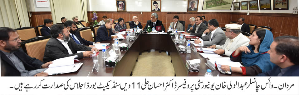 11th meeting of the Syndicate, Abdul Wali Khan University Mardan, was held at the Main Campus, under the Chairmanship of the Vice-Chancellor, Prof. Dr. Ihsan Ali.