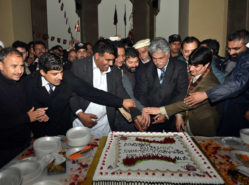 The formal event, on eve of the 7th Foundation Day of Abdul Wali Khan University Mardan, was held at the Garden Campus. On the occasion, Vice-Chancellor, Prof. Dr. Ihsan Ali hoisted the National as well as the University Flag and cut the Foundation Day Cake to honor the auspicious event.