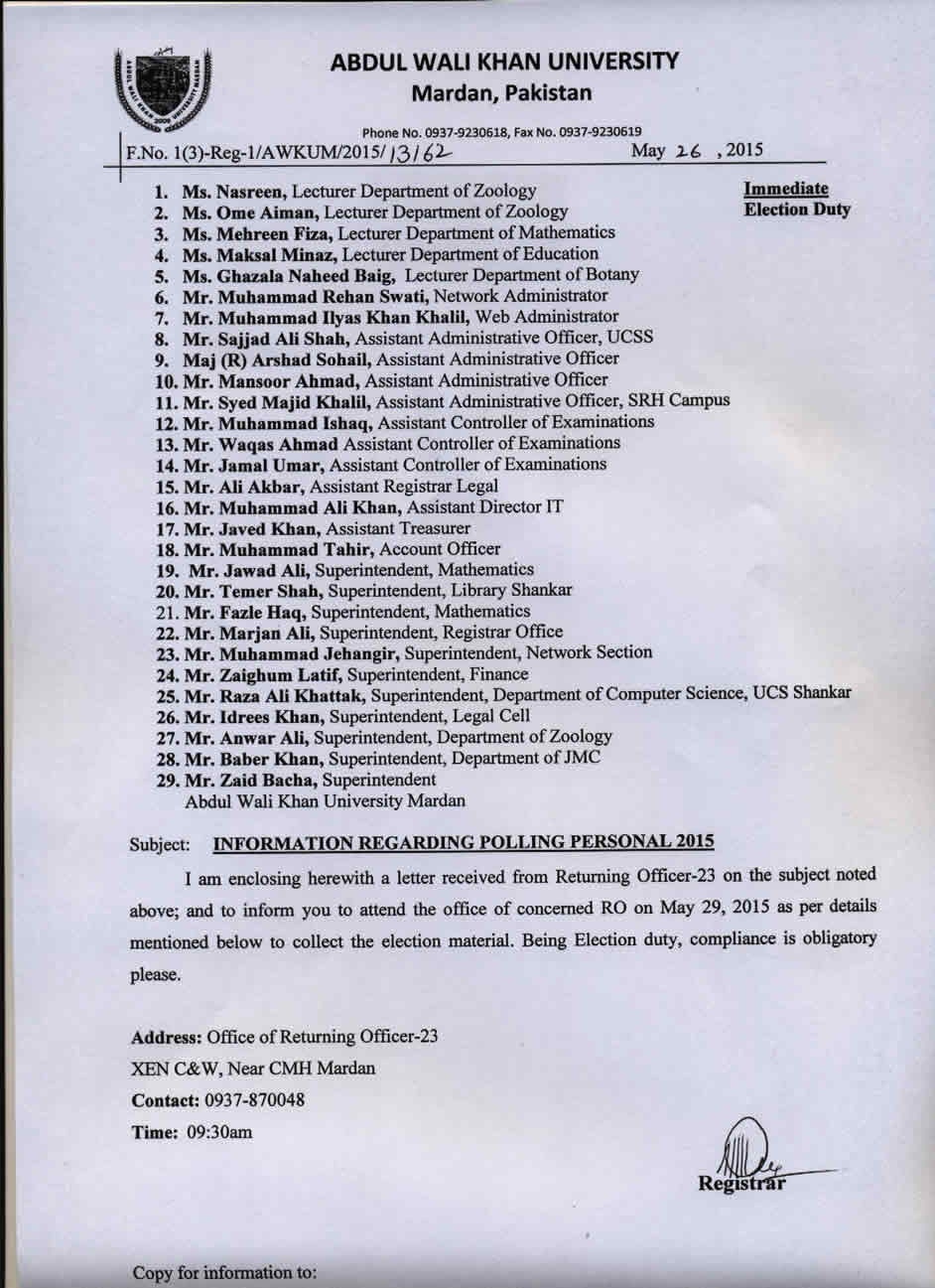ABDUL WALI KHAN UNIVERSITY MARDAN