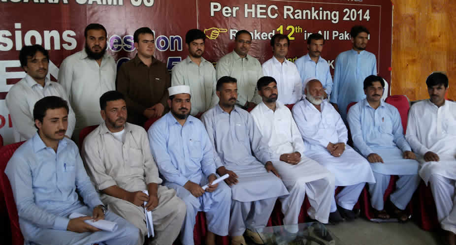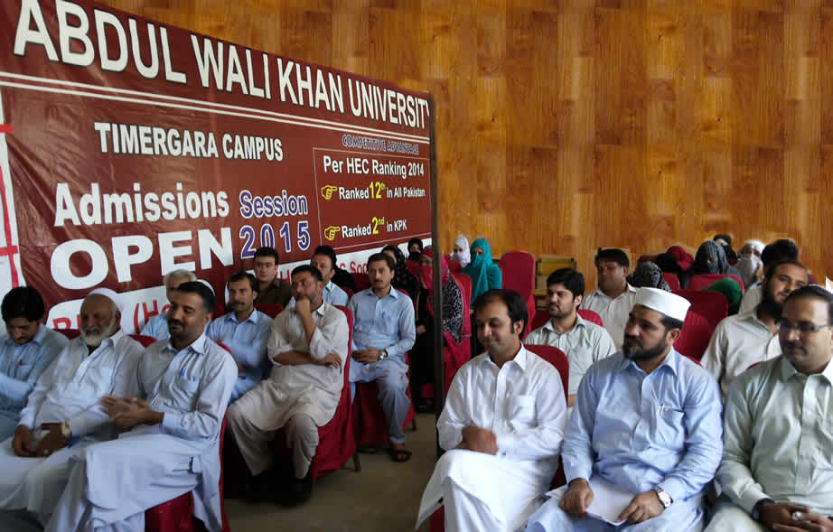 A seminar on Education Awareness and Admission Campaign organized by Timergara campus at Jinnah Collage Talash Dir Lower. Students, males and females were invited who were recently completed their FA/FSc from the host collage. The principals of government & private collages were also invited. Program started with the recitation of the Holy Quran. After recitation, Mr.Ajmal Khan, lecturer in Timergara Campus, briefly expressed the vision of Vice Chancellor, Dr. Ihsan Ali which leaded to the establishment of Abdul Wali Khan University Mardan and later on Timergara Campus. For progressing the program further, Ex-Principal and educationist, Mr. Hafizullah shared his views regarding Education Awareness and Admission campaign. Dr. Nawsher Khan, Head of Department, Computer Science, Timergara Campus concluded the program with unfolding the facilities i-e Transport, Hostel, Library, Internet, Scholarships, PM reimbursement, Air-condition & Multimedia equipped labs & classrooms, playground, canteen for both males and females, Common room for female staff and students, Security control through CCTV cameras,Generator for 24 hours electricity provision, at Timergara Campus. At the end of program Mr. Shakir Ullah, Director of the host college, thanked the participants and appreciated the Timergara campus,Abdul Wali Khan University Mardan.