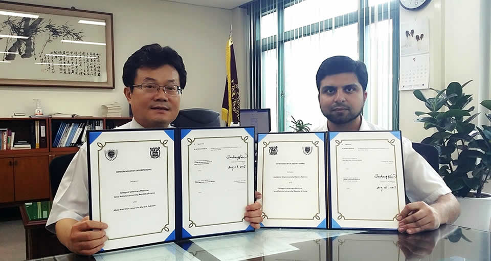 Adhering to its key objective of internationalizing Higher Education, Abdul Wali Khan University Mardan signed MOU with College of Veterinary Medicine Seoul National University, South Korea, on 5th October, 2015.