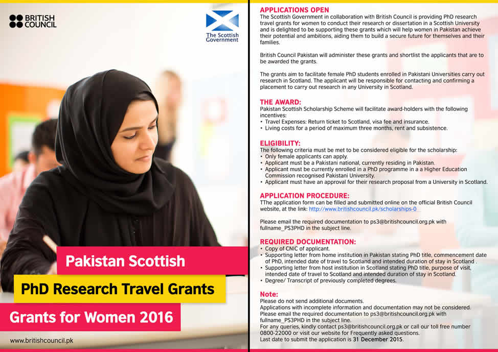 Advertisement "Pakistan Scottish PhD Research Travel Grants for Women 2016"