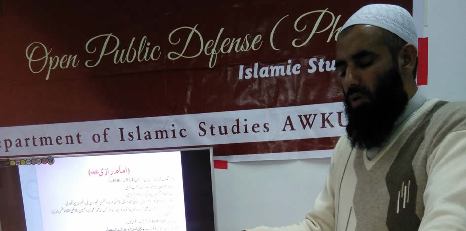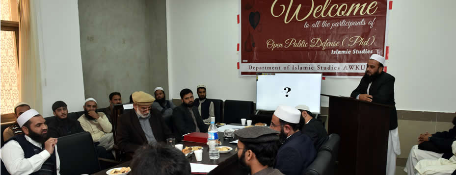 Mr. Sohail Anwar, Lecture, Department of Islamic Studies and Mr. Najmul Hassan Demonstrator, AWKUM have successfully defend their Ph.D dissertations on 19-11-2015 at PCA, Garden Campus, AWKUM which was attended by the Ph.D Public Defense Committee i.e. Prof. Dr. Dost Muhammad (External Examiner) Director Shaikh Zayed Islamic Center, University of Peshawar, Dr. Muhammd Naeem (Research Supervisor), Dr. Abzahir Khan (Supervisor) Prof. Dr. Salimullah Sha (Director Academics, AWKUM) Prof. Dr. Niaz Muhammad (Dean, Faculty of Arts & Humanities, AWKUM), Dr. Hafiz Salihuddin, (Chairperson, Department of Islamic Studies, AWKUM), faculty members and students especially M.Phil and Ph.D Scholars.