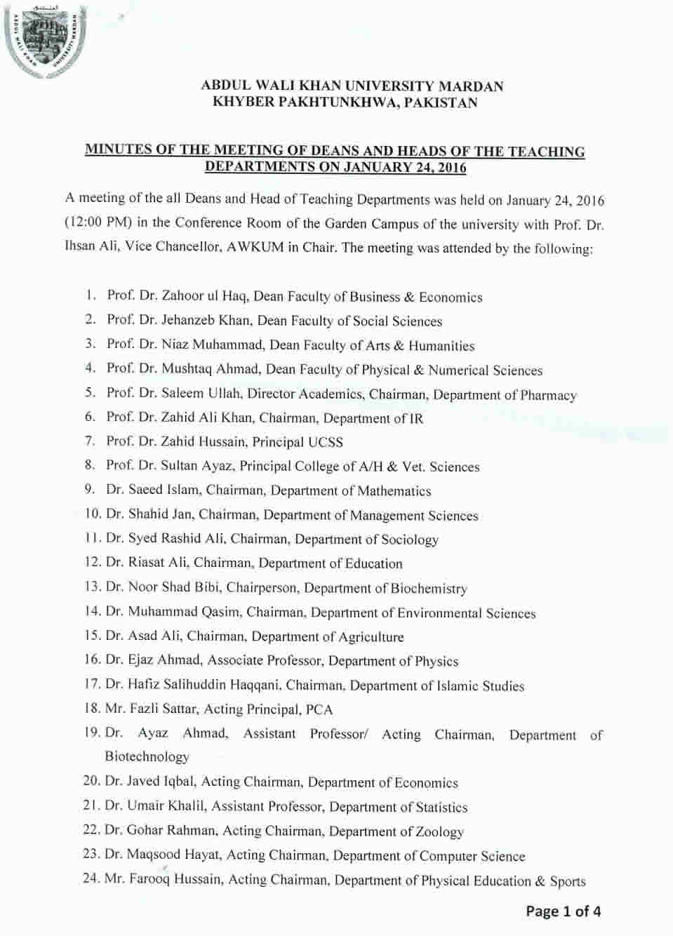 Minutes of the Meeting of Deans and Heads of the Teaching Departments on January 24,2016