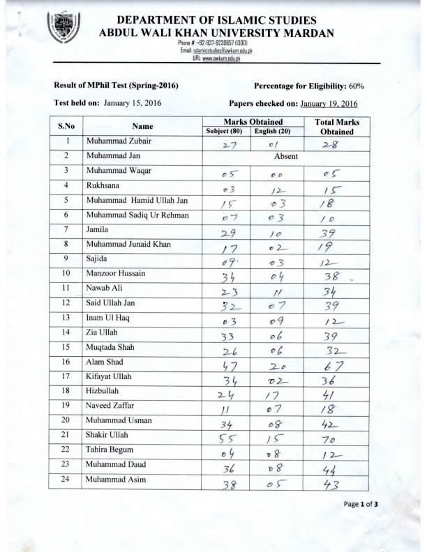 ABDUL WALI KHAN UNIVERSITY MARDAN