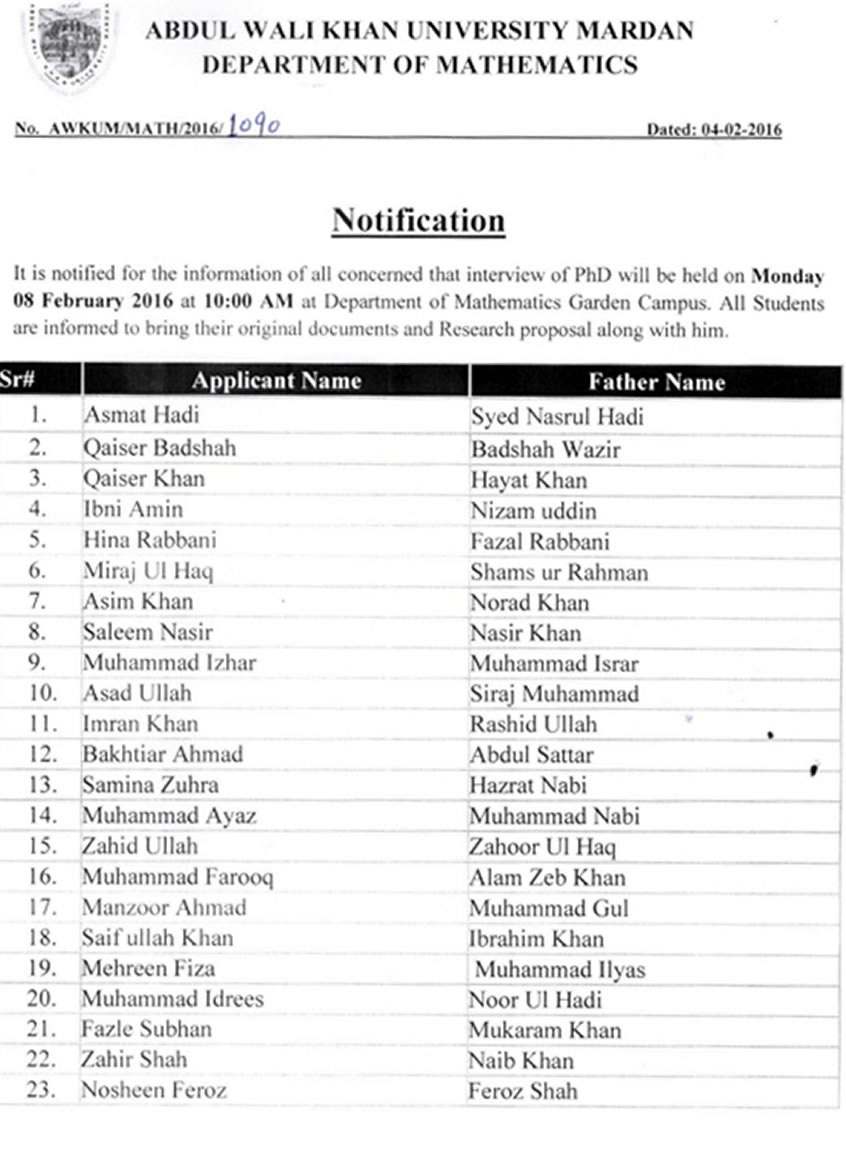 ABDUL WALI KHAN UNIVERSITY MARDAN