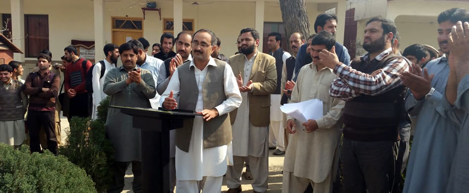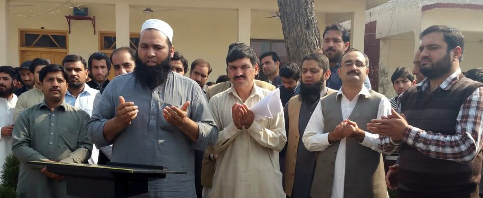At the denouement the coordinator of AWKUM, Shaheed Rashid Hussain campus Pabbi, Mr. Naveed Farooq delivered a mourning speech with cordial blessing for martyred of Bacha Khan University Charsadda. In the moment the spurring of cake was prestiged.