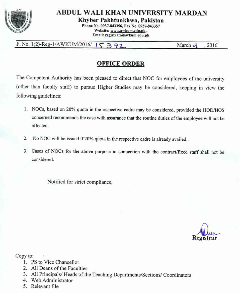 Office Order Regarding "NOC for Employees to Pursue Higher Studies"