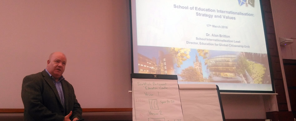 University of Glasgow: Inspiring People, Changing the World by Dr. Margery McMahon, Higher Education in Scotland and UK by Professor Michael Osborne, Director of Research, School of Education. Discussion groups by Dr. Margery McMahon |