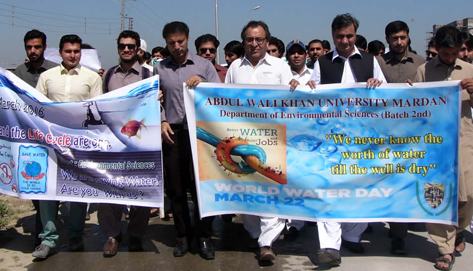 To observe World Water Day, The Department of Environmental Sciences, Abdul Wali Khan University Mardan, organized screening of a documentary and a walk around the campus on 22nd March 2016.