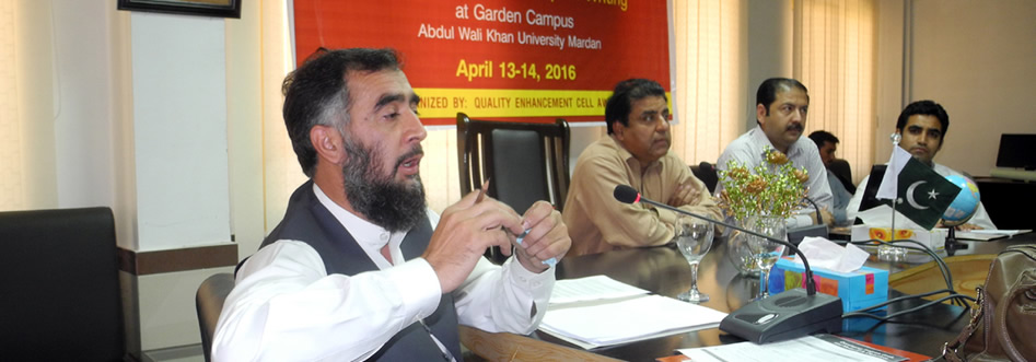 A two day workshop on "Self Assessment Report Writing" was organized on April 13-14, 2016 at Garden Campus, Abdul Wali Khan University, Mardan. PT members from the all the faculties attended the workshop.