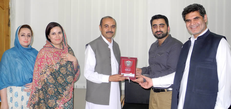 At the end of the session, Dean of Economics & Business Studies presented a souvenir to HR Manager Khyber Tobacco Company on behalf of Abdul Wali Khan University Mardan.