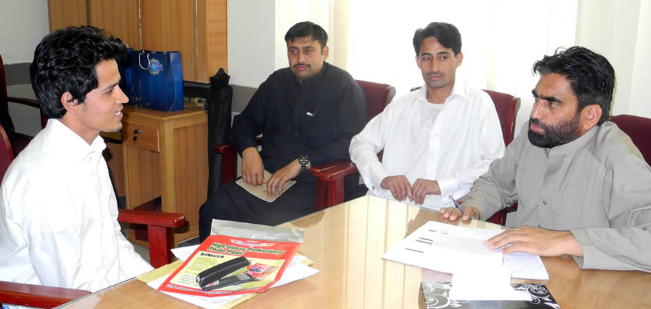 Before starting the interviews, the Khyber Tobacco Company HR Manager, Mr. Yasir Ali delivered a session on Career Management and CV writing. Among the 70 shortlisted students, about 27 wining students of the quiz, conducted in training were interviewed and with addition to that two students were also awarded with prize of "Students of the session".