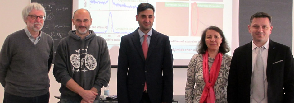 Overseas PhD Scholar of Abdul Wali Khan University Mardan, Mian Kashif Safeen, successfully defended his PhD thesis entitled "Growth Study and Characterization of TiO2 Based Thin Films for Low Temperature Synthesis of Transparent Conductive Films" at Department of Physics, University of Trento, Italy, which is among the top 200 universities in the world. His thesis was supervised by senior scientist Dr. Nadhira Bensaada Laidani from Fondazione Bruno Kessler, which is a prestigious research center in Italy. His external examiners were Dr. Eric Tomasella from Institut de Chimie de Clermont-Ferrand, Blaise Pascal University, France and Prof. Umberto Scotti Uccio from Department of Physics, University of Naples "Federico II, Italy. His internal examiner and president of the committee was Prof. Paolo Fornasini from Dipartimento di Fisica, Universita' di Trento, Italy. All members of the committee were experts in the field of condensed matter physics.