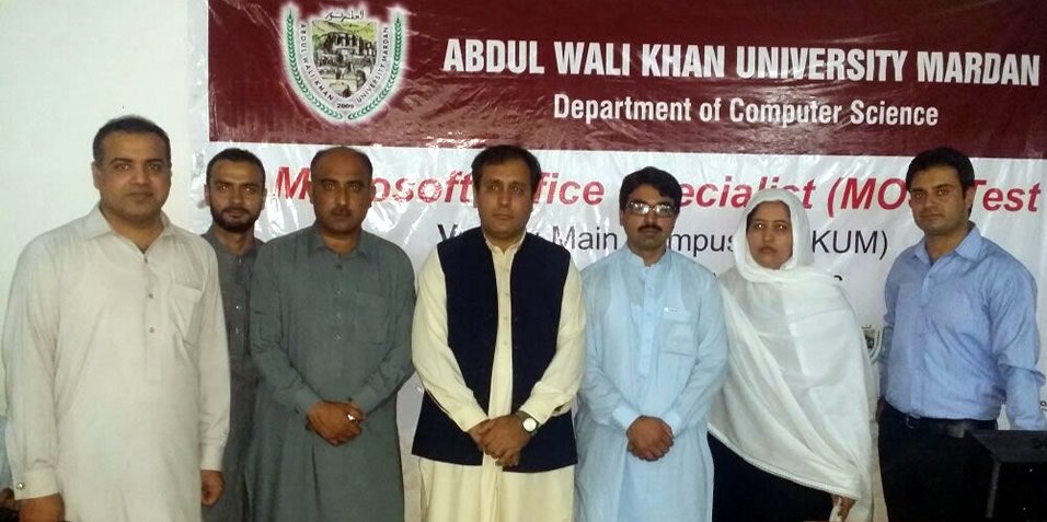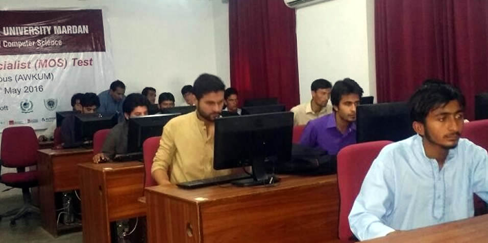 Department of Computer Science Shankar Campus has conducted MOS test with the collaboration of HEC on 23rd and 24th May, 2016. The test was inaugurated by Prof. Dr. Aurangzeb Khan, Dean Faculty of Physical and Numerical Sciences. The MOS test was successfully passed by more than 33 students of AWKUM in the first phase. Furthermore, the Microsoft certificate distribution ceremony will be arranged soon at the department of Computer Science.
