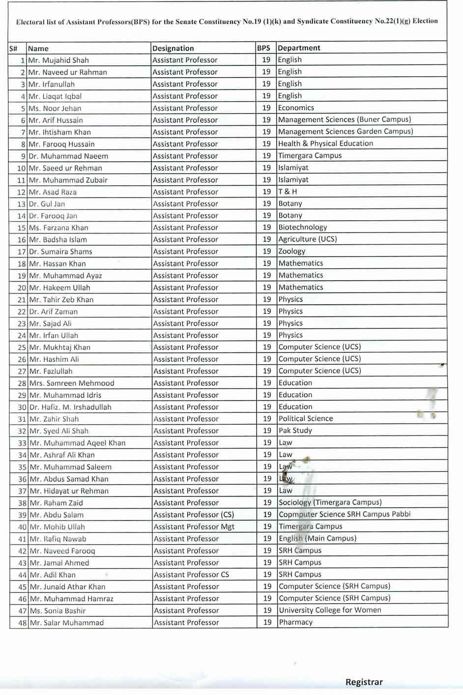 Electoral List of Professors (BPS-21) for Election for the Syndicate constituency 22 (1) (g) |