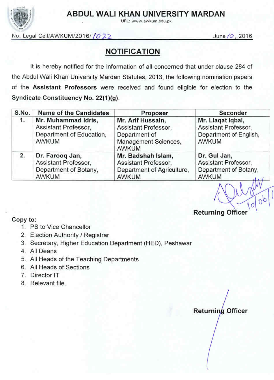 ABDUL WALI KHAN UNIVERSITY MARDAN