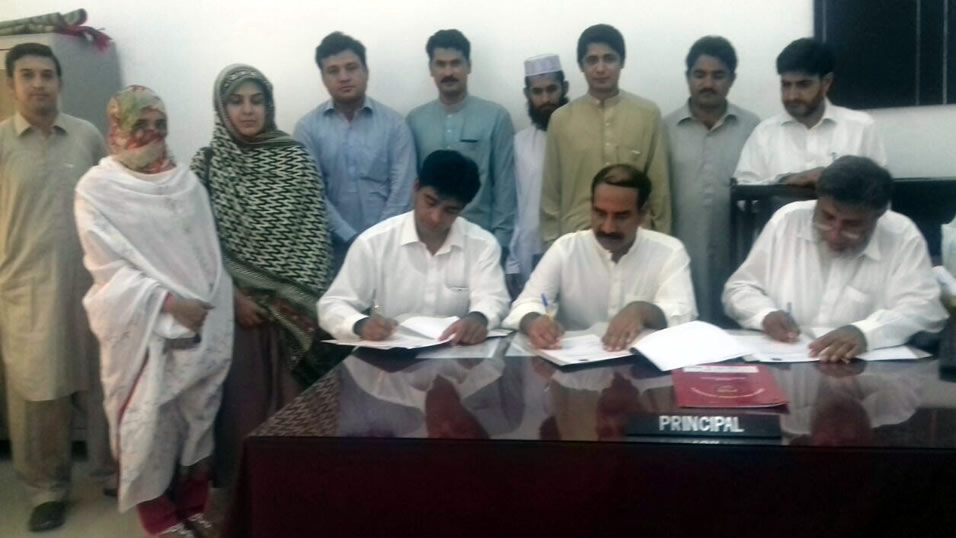 The MOU signing ceremony took place at the College of Veterinary Sciences Abdul Wali Khan University Mardan on Sep 19, 2016. On behalf of AWKUM Prof. Dr. Sultan Ayaz and Mr. Muhammad Qayash Khan signed the MOU while Dr. Asghar Ali National Program Manager (RI) signed the MOU on behalf of Relief International.