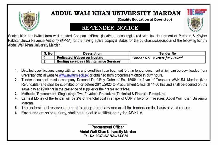 Re-Tender Notice For " Dedicated Web server Hosting and Maintenance Services"