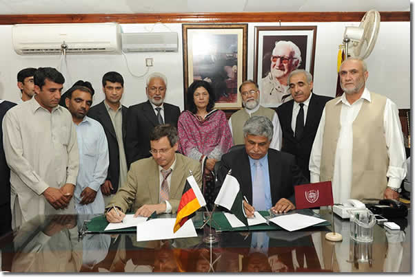 An MoU was signed between Abdul Wali Khan University, Mardan and University of Rostock, Germany. The MoU was jointly signed by Prof. Dr. Ihsan Ali, Vice - Chancellor, AWKUM and Prof. Dr. Peter Langer. Under the MoU University of Rostock, Germany would arrange three to six months training programme for two faculty members of AWKUM every year and the expenses would be borne by the University of Rostock.