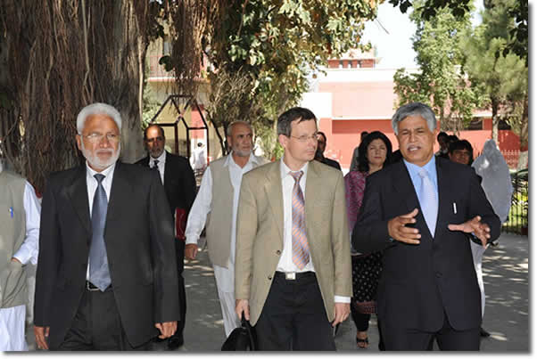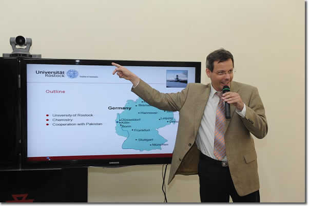 Prof. Dr. Peter langer, Head of the Department of Chemistry, University of Rostock, Germany visited Abdul Wali Khan University, Mardan and delivered a lecture to students and faculty of AWKUM. Prof. Dr. Ihsan Ali, Vice - Chancellor, AWKUM gave an impressive presentation on establishment and development of Abdul Wali Khan University, Mardan during last 3 years.