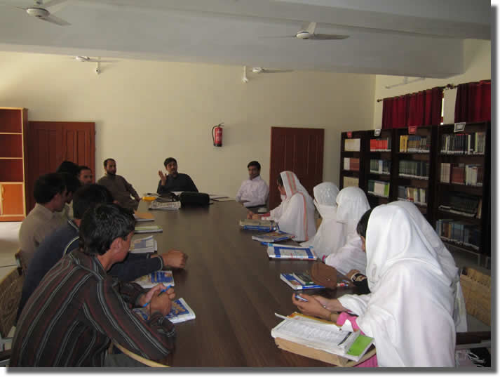 Shehzad Khan (Lecturer Management Sciences) conducting group discussion with faculty members and students regarding course outlines and teaching methodology.