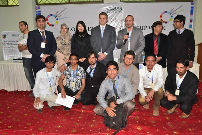 Students of the Department of Management Sciences participated in Global Entrepreneurship Week (GEW) organized by GEW Pakistan from 16-18 November, 2012. The epilog of the event was to expose successful entrepreneurship in the presence of renown and globally recognized figures and professionals. Mr. Kashif Khan, President of GEW Pakistan, and Ms. Ellie, CEO of Jobs International Private Limited, praised and acknowledged the highly beneficial input of students from AWKUM. Furthermore, AWKUM students also meet the US-Ambassador to PakistanMr. Richard Hoagland and discussed the activities of the Youth Entrepreneurship Society of AWKUM in detail. The ambassador encourage students to actively participate in entrepreneurial activates and learn the skills of managing business to become successful entrepreneurs.