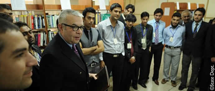 Mr. Richard Hoagland (US-Ambassador to Pakistan) with AWKUM students. |