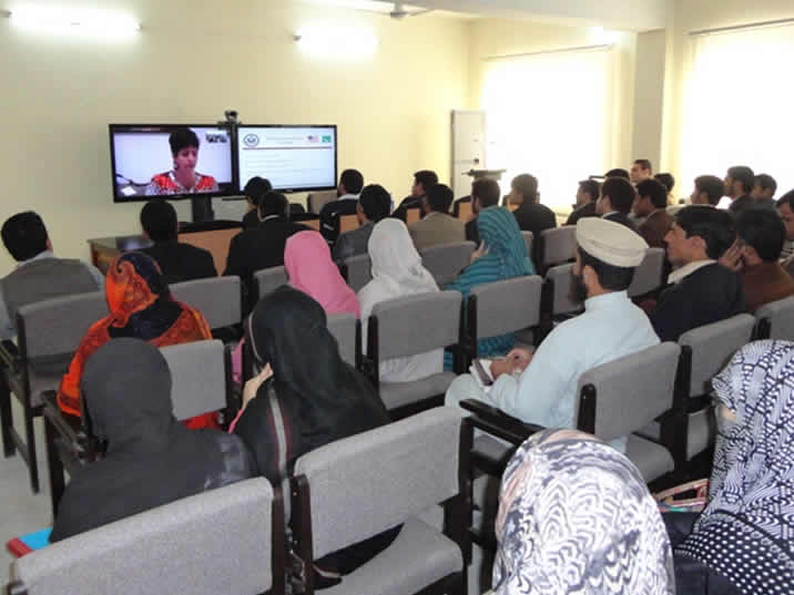 US Consulate Peshawar organized video conference on the topic of “Study in USA”. Students and faculty members of Department of Management Sciences (Main Campus) participated in video conference. Ms. Tammy Paltchikov (Public Affairs Officer, USA) provided guidelines to student regarding pursuing education in USA. She highlighted the hall mark of US education and discussed the academic eligibility criteria for admission to program offered in USA. She encouraged students to apply for higher education.