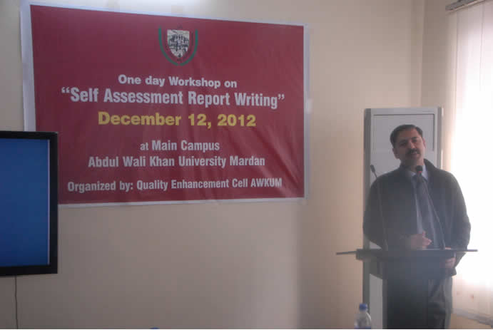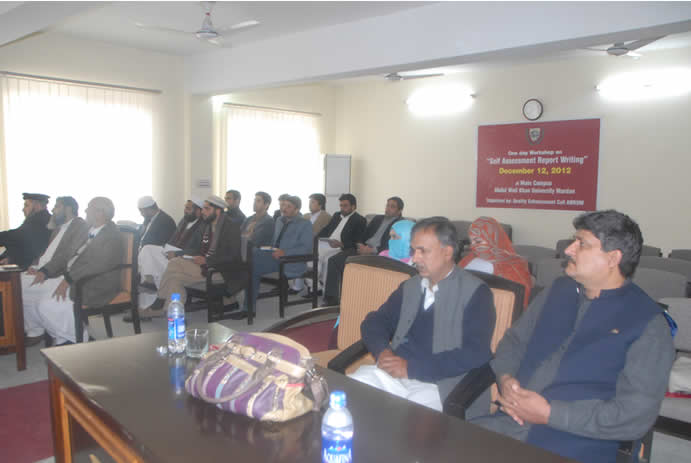 A one day workshop on “Self Assessment Report Writing” has been organized by QEC AWKUM on December 12, 2012 at Main Campus Abdul Wali Khan University Mardan. Program Teams (PT) members from four departments and Deans of Abdul Wali Khan University Mardan attended the workshop.