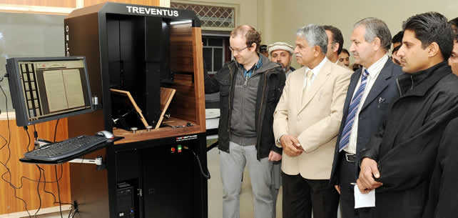 Abdul Wali Khan university Mardan has purchased the latest scanner machine to facilitate the students of the university. It is purchased on sixteen million and imported from Austria. It can scan automatically three thousand pages within an hour. It also digitally arranges the pages. Prof Dr. Ihsan Ali, Vice Chancellor AWKUM has inaugurated the machine During the occasion the chief Engineer of Treventous Company, Christophe Batcher, briefed the Vice Chancellor about the scanner. The Vice Chancellor said that the provision of scanner will help the majority of the students. Now a book will be easily provided to the thousands of students. It can save the data in soft form for a long time and unlimited students. This will also raise the standards of the university according to the modern and international standards. In charge I.T, Rehan, Deputy Provost Ibrar Hussain Umarzai, Deputy Director Finance Arsh-ur-Rehman, Deputy Registrar Tariq Mehmood & Spokesman of the university Abid Mehmood were also present on the occasion.