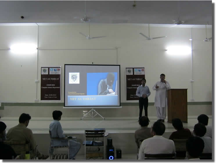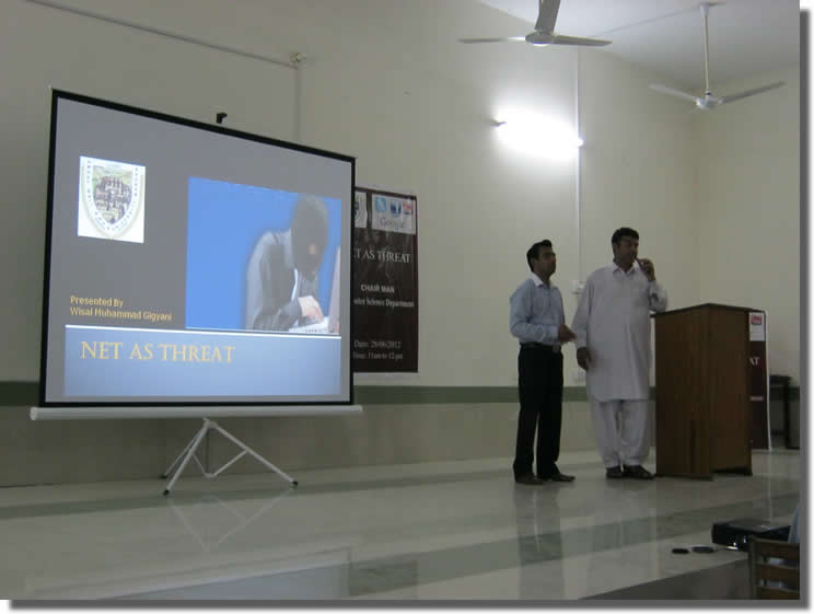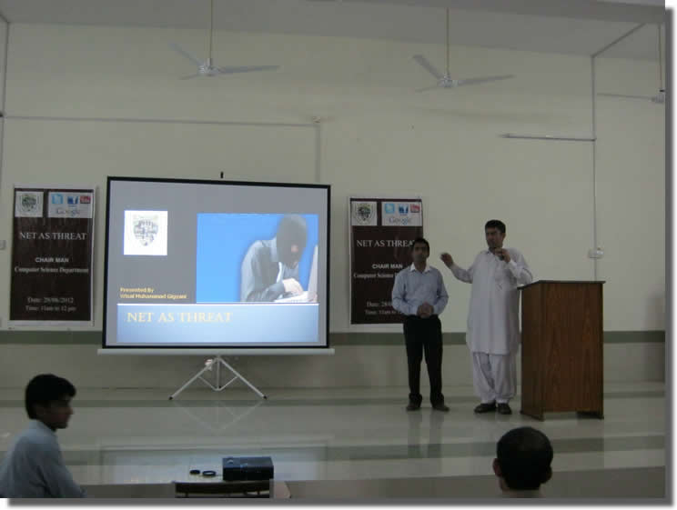 One day seminar has been conducted at Abdul Wali Khan University Mardan, Buner Campus on "Net As Threat", Presented by Chairman of Computer Science department Mr.Wisal Muhammad Gigyani.